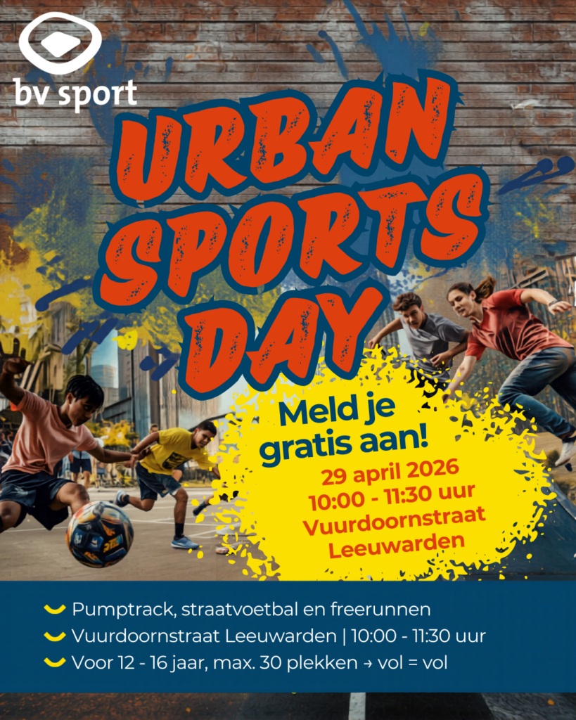 Op 29 april organiseren we een sportieve ochtend op en rondom het Cambuur Cruyff Court, de speeltuin en de pumptrack aan de Vuurdoornstraat in Leeuwarden waar je onder begeleiding aan de slag gaat freerunning, straatvoetbal en pumptracken.